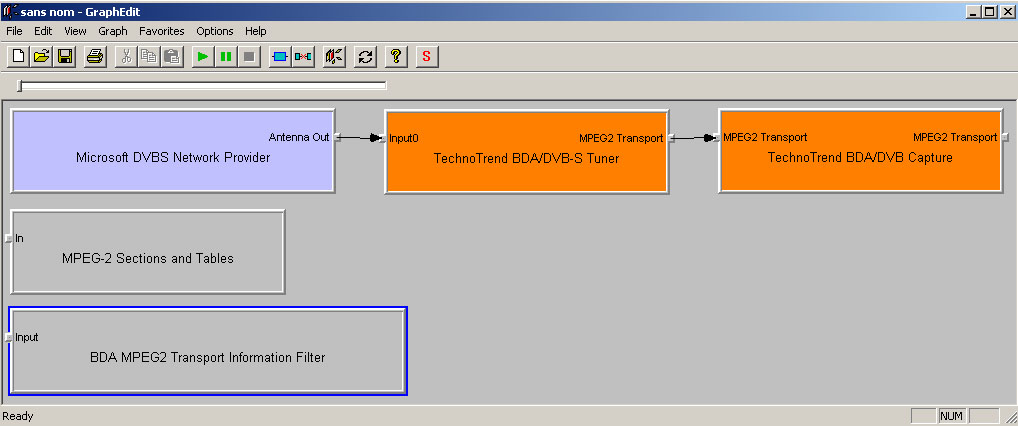 3 >>>>> On peut maintenant relier le filtre 'Microsoft DVBS Network Provider' avec le filtre TechnoTrend Tuner