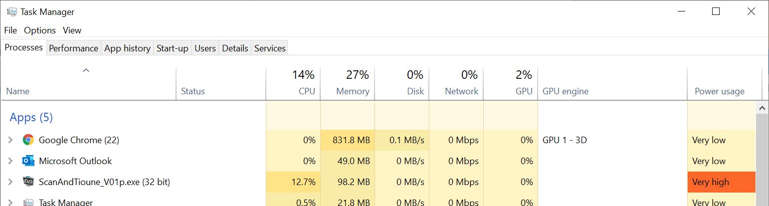 (but again, if you start the scanner,you will have one CPU % that goes high)