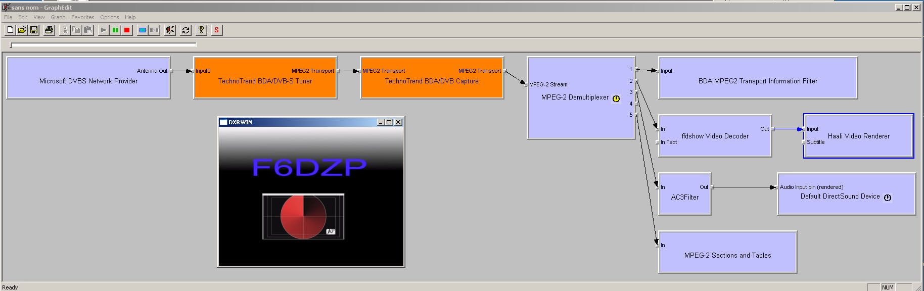 3 >>>>> On peut maintenant relier le filtre 'Microsoft DVBS Network Provider' avec le filtre TechnoTrend Tuner